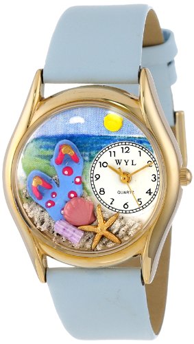 Whimsical Watches Women"s C1210013 Classic Gold Flip-flops bay Blue Leather And Goldtone Watch